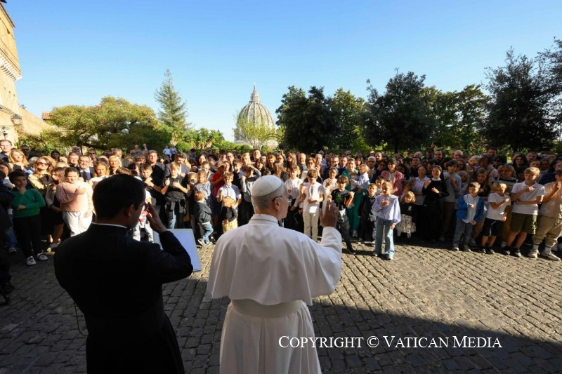 Azt mondták nekem, hogy ti minden évben találkoztok egy egyszerű piknikre. Ez nagyon jó, mert a munkán túl osztozhattok egy kis kikapcsolódásban és imádkozásban is. Ma pedig ezt azért teszitek, hogy utána a Szent Péter téren együtt imádkozhassunk a békéért. Lám, milyen fontos, hogy kommunikációnkat imádság kísérje! Azt mondanám, hogy ez mindent megváltoztat. A világ talán nem tudja, nem érti, de mi igen, és mindig törekednünk kell erre: kísérjük imádsággal a mindennapi kommunikációs munkánkat!” – buzdított Leó pápa, aki végül megköszönte a találkozást, majd megáldotta a jelenlévőket.