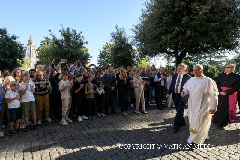 Apránként megismerlek benneteket – folytatta XIV. Leó. – Tudom, hogy szenvedélyesen dolgoztok azon, hogy a pápa szavait és gesztusait mindenhová eljuttassátok. Teszitek ezt mindennap, diszkréten és rejtetten. Ám ma boldog vagyok, mert láthatlak benneteket és találkozhatom veletek, különösen ebben a családias környezetben, mindannyian együtt.