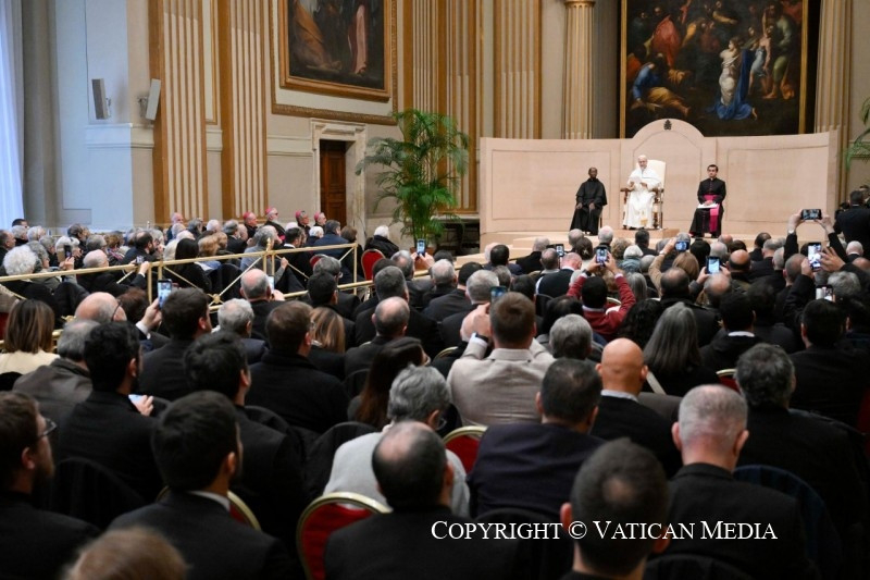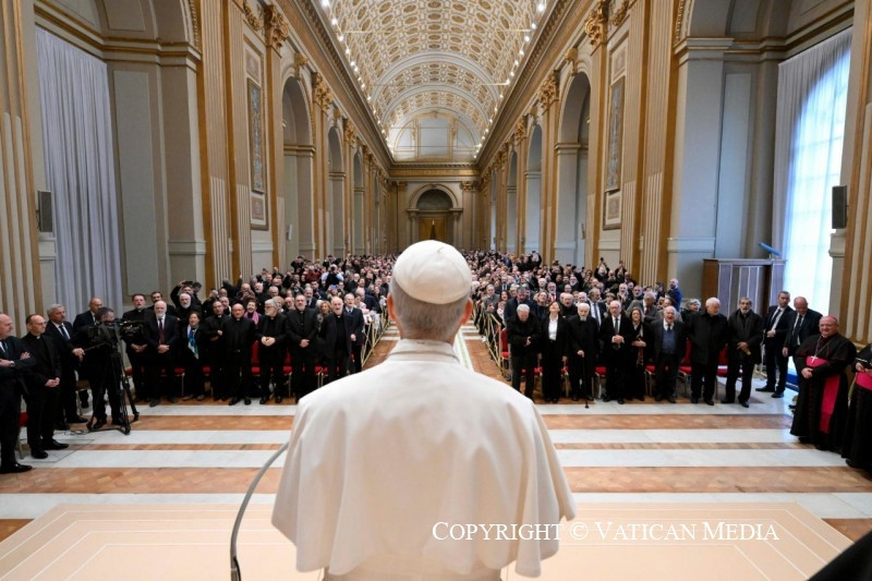 A Szentatya arra szólította a tagokat, hogy gyakorolják a „belső éberséget és a bölcs kritikai érzéket annak érdekében, hogy felismerjék a lelki és egyházi életben mindig leselkedő bizonyos kockázatokat”. Hangsúlyozta, hogy a keresztség szentsége Krisztussal egyesít minket, és „testének élő tagjaivá, egyetlen népévé, egyetlen családjává tesz”, s hogy „ha a Lélek mindegyiküknek különlegesen megnyilvánul”, ez azért történik, hogy az Egyház küldetését szolgálja.