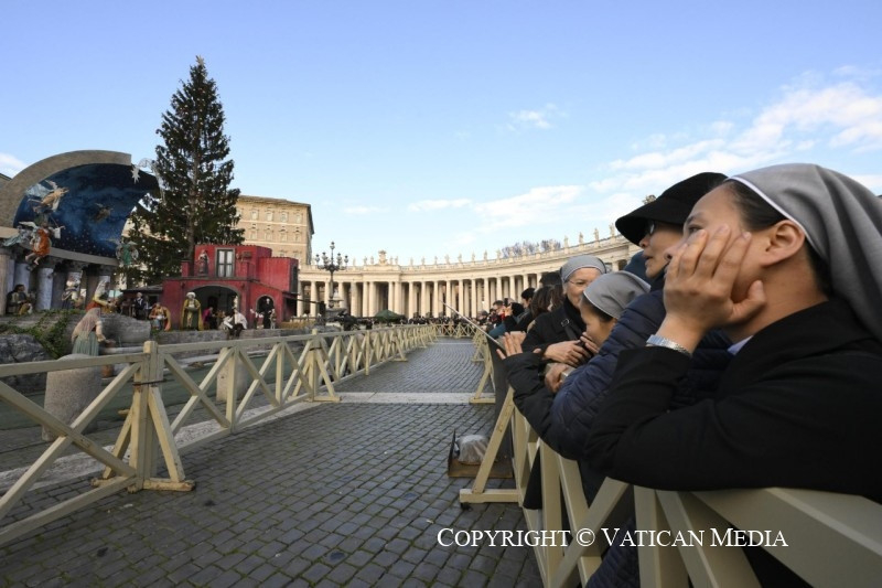 Kedves barátaim, Isten Fiának születése közöttünk Isten gyermekeinek életére hív bennünket: ezt olyan vonzerővel teszi lehetővé, amelyet Betlehem éjszakájától kezdve megtapasztaltak az olyan alázatos emberek, mint Mária, József és a pásztorok. De