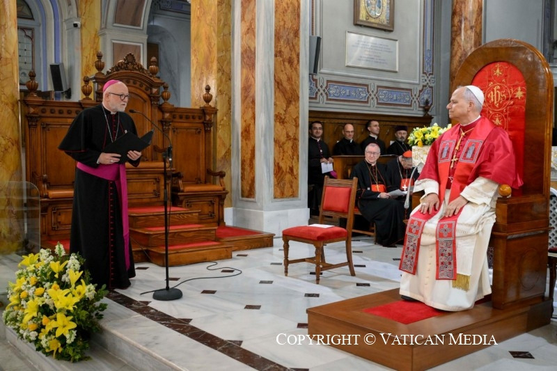 Nikaia ma is ennek átgondolására hív bennünket: Kicsoda számunkra Jézus? Mit jelent lényegében kereszténynek lenni? A hitvallás, melyet egyhangúan és közösen vallunk meg, így a megkülönböztetés mércéjévé, az eligazodás iránytűjévé, hitünk és cselekvésünk központi tengelyévé válik. A hit és a cselekedetek közötti kapcsolat összefüggésében szeretném megköszönni a nemzetközi szervezeteknek – különösen a Caritas Internationalisnak és a Kirche in Notnak – az Egyház karitatív tevékenységeihez és különösen a 2023-as földrengés áldozatainak megsegítéséhez nyújtott támogatásukat.