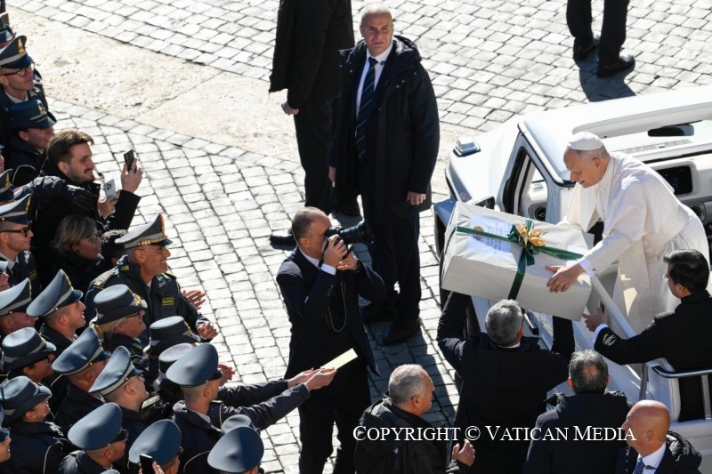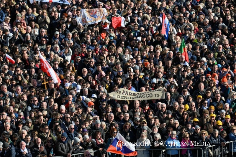 Szeretettel üdvözlöm az összes többi zarándokot is, különösen a Teramo–Atri egyházmegye ACLI-csoportját és az ukrajnai egyházmegyékből érkezett híveket: vigyétek hazátokba e tér ölelését és imáját!