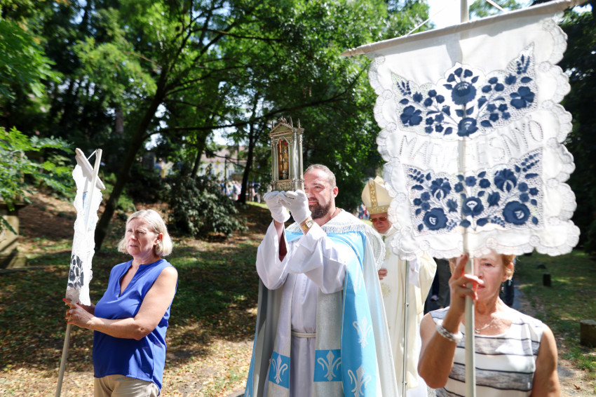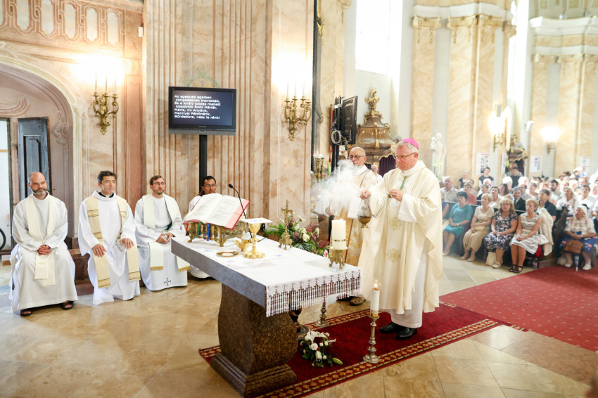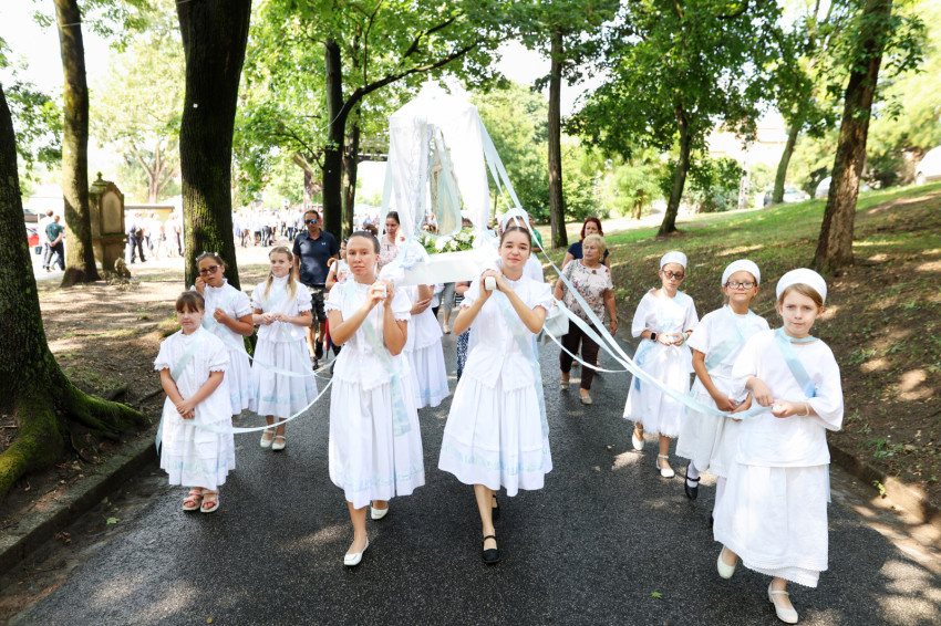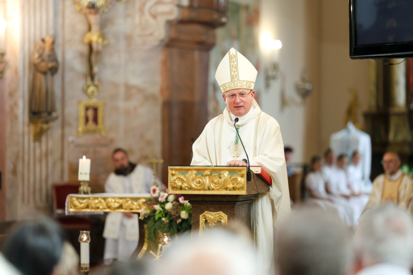 A nagyváradi püspök csodálatosnak nevezte, hogy ebbe a nagy égi jelenetbe belefeszítődik a mi sorsunk is, ami nem a pusztulást és a megsemmisülést tartogatja számunkra, hanem a megújult és örökké tartó élet boldogságát. A mennybe felvett Szűzanya pedig a megérkezés emlékével erősít minket. Ez az ünnep, amelyre örömmel jöttünk erre a gyönyörű zarándokhelyre, arra hív bennünket, hogy terhektől megkönnyített szívvel, a bűn homályától megtisztított lélekkel Isten csodálatos működését szemléljük Mária felemelkedésében, aki nem szakadt el tőlünk, hanem magához vonz, hogy jobban megismerjük és életünkbe fogadjuk Isten megmutatkozó szeretetét, Jézus Krisztusban, aki minden megújulásnak elindítója és forrása. Szemléljük és kövessük Máriát, tegyük ezt bizalommal, és engedjük, hogy általa Krisztus fénye töltse be életünket, mert csak világító emberekként tudunk helytállni abban a harcban, és azon a harctéren, amelyen a gonosz lélek ma is keresi és gyűjti áldozatait a világban. Csak így állhatunk ellen a lehúzó erőknek, amelyek már nem egyszer zsákutcába és a boldogtalanságba taszították az embert.