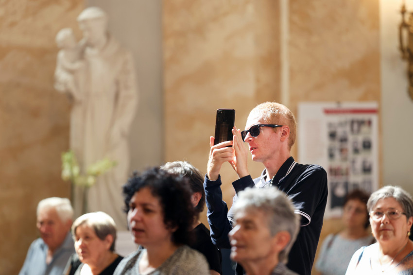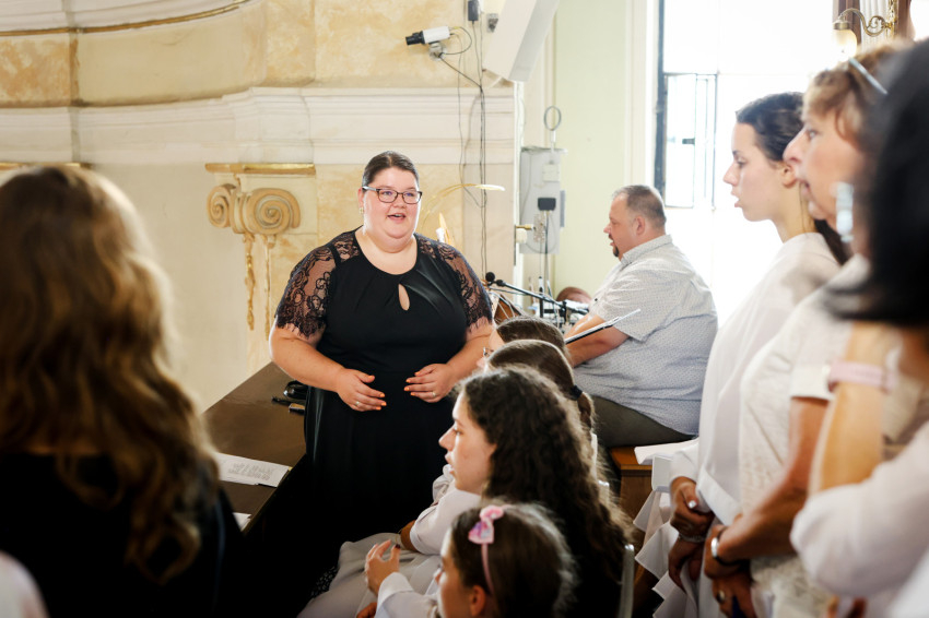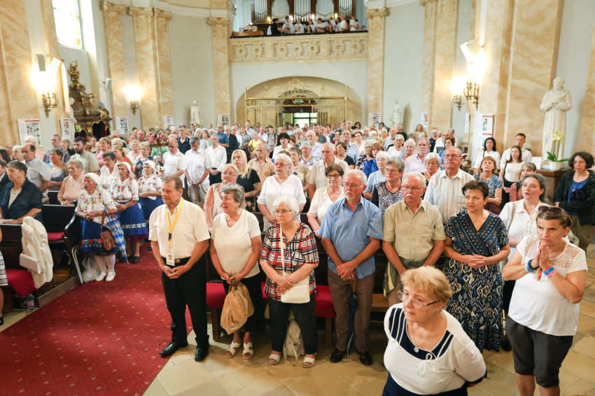 A szentmisére várva a hívők Mária-énekekkel készültek lélekben a szertartásra. A kórust vezető Kája Sándor kántor kivételesen nagy terjedelmű, hangszínében is különleges hangja betöltötte a bazilikát, a művészi szent zene már eleve közelebb emelte az emberek lelkét Istenhez.