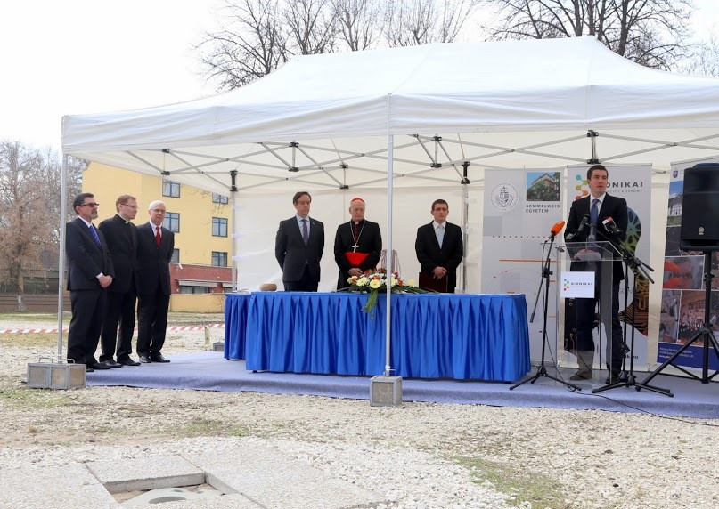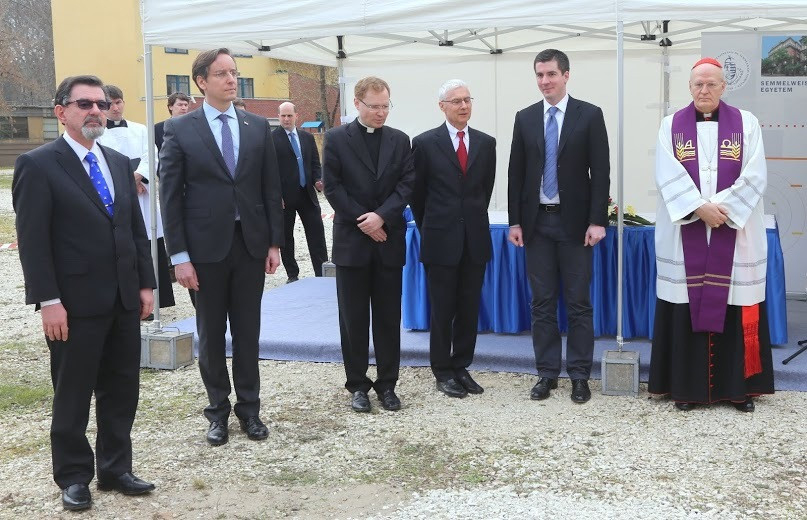 Szuromi Szabolcs rektor az egyetem tudományos kapcsolatrendszerére irányította a jelenlévők figyelmét, amely nemcsak a különböző európai és egyesült államokbeli intézményekkel jön létre (így például a PPKE kapcsolatot tart fenn a krakkói Jagelló Egyetemmel, a spanyolországi Universidad de Navarrával és az indianai Notre Dame Egyetemmel is), hanem a leendő központ és a benne megvalósuló kutatások között is. Hiszen, amint hangsúlyozta, a tervek szerint olyan épület átadására kerülhet majd sor, amely lehetővé teszi a folyamatosan változó, multidiszciplináris tudományterület alakulásának követését is.