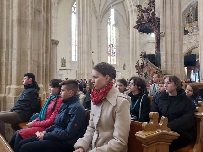László Attila főeseperes-plébános köszöntötte a hittanolimpia résztvevőit a Szent Mihály-templomban.
