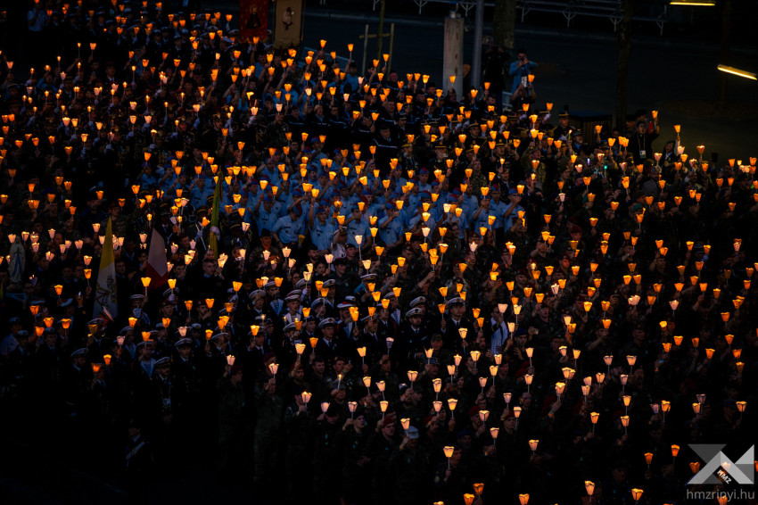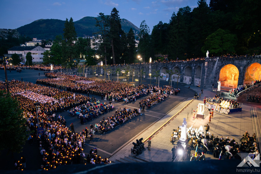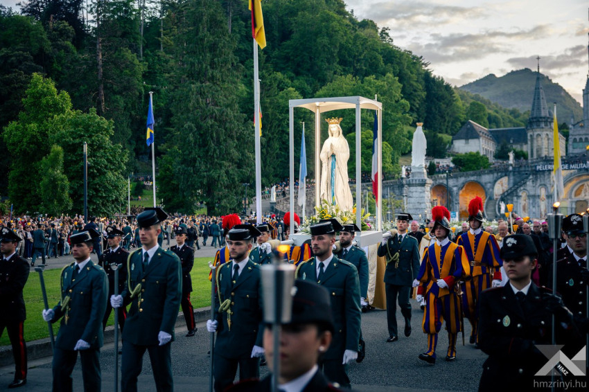 Ezt követően a magyar zarándokok részt vettek a zarándoklat egyik legismertebb szertartásán, a gyertyás Szűz Mária-körmeneten, amelyen az MH Budapest Helyőrségi Zenekar látta el a zenei szolgálatot. A 65. Lourdes-i Nemzetközi Katonai Zarándoklat szervezőinek tájékoztatása szerint a Szeplőtelen Fogantatás-bazilika előtti téren záruló körmeneten mintegy 19 ezer katonai és civil zarándok vonult fel nemzeti lobogók alatt.