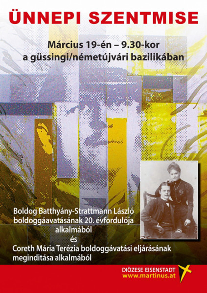 Március 19-én, vasárnap a németújvári (Güssing, Ausztria) kisbazilikában 9.30-kor kezdődő püspöki szentmise keretében jelentik be, hogy elindul Boldog Batthyány-Strattmann László felesége, Coreth Mária Terézia boldoggáavatási eljárása. A kanonizációt a szombathelyi és a kismartoni egyházmegye együtt kezdeményezte.