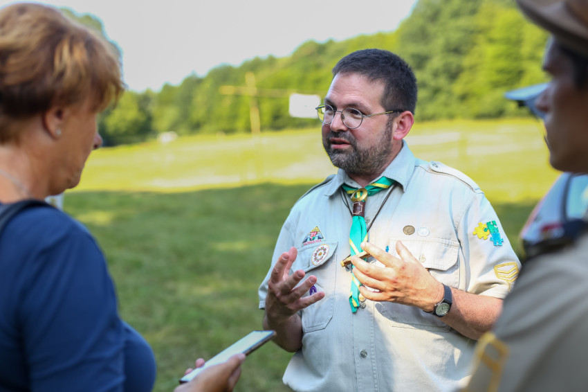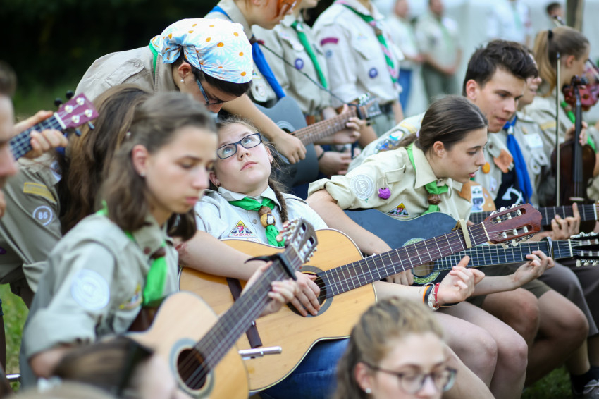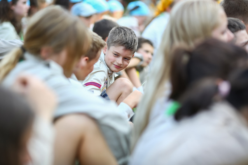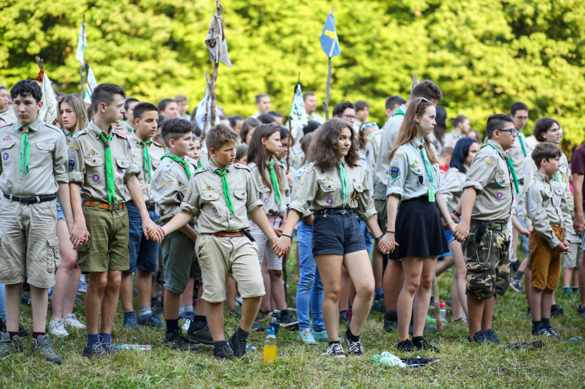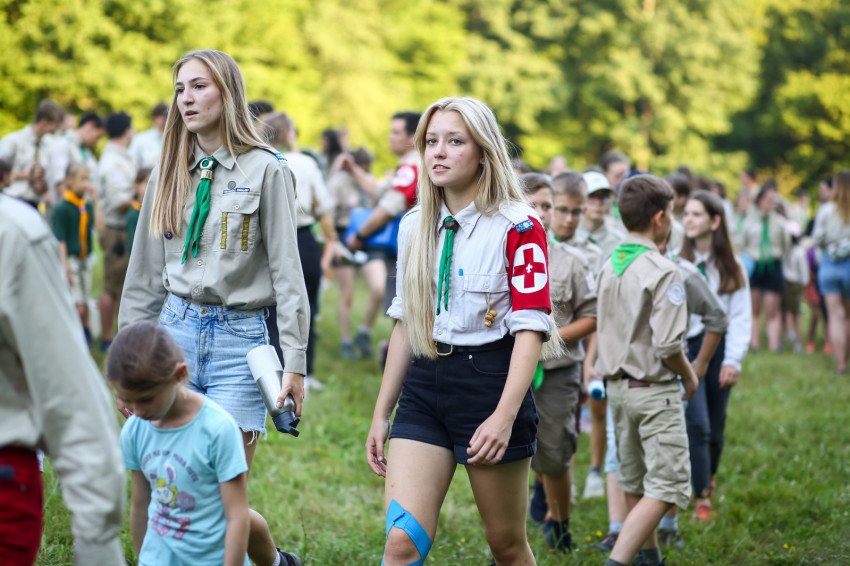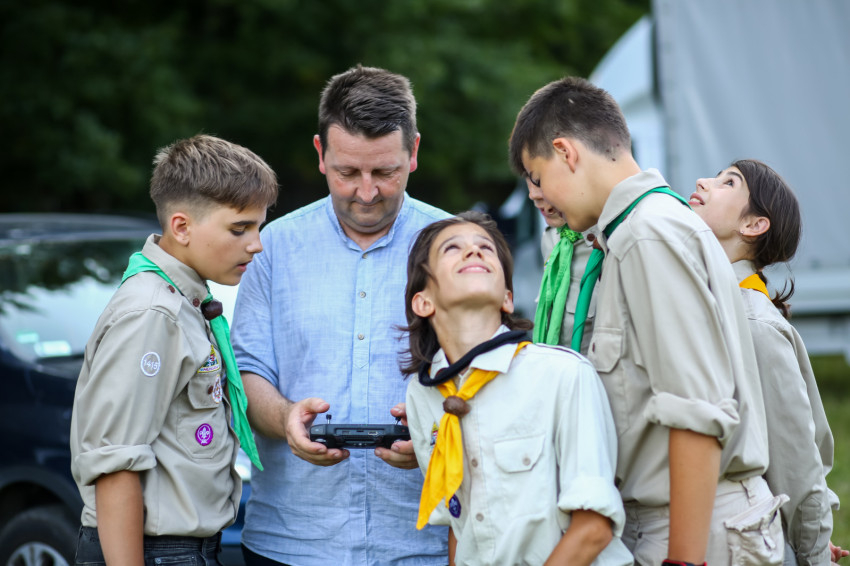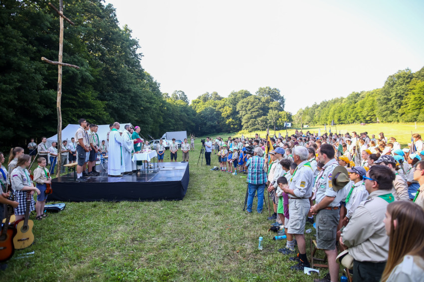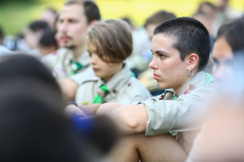 Varga Bálint táborparancsnok a nyitónapról beszélt. Nagy ünnep volt. 43 cserkészjelölt a nagytábor előtt tehetett fogadalmat. „Még egy hét van előttünk, a találkozás, együttlét megannyi élménye.”