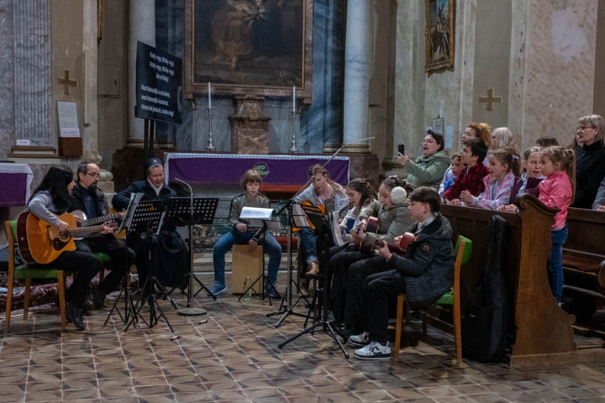 A szentmisének felemelő, meghitt hangulatot adott a kórus, az Arad különböző plébániáihoz tartozó családok közös zenei szolgálata, melyet gitárral és dobbal kísértek.