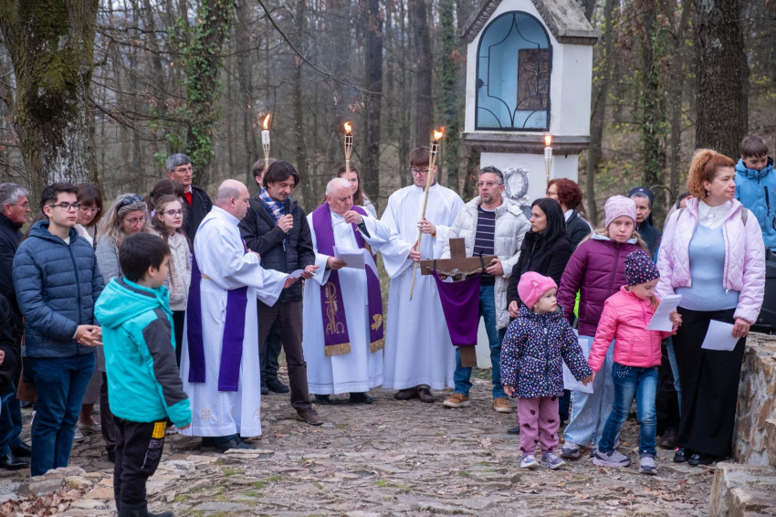 A liturgia után a bazilika mögötti domboldalon a résztvevők végigjárták Krisztus keresztútját.