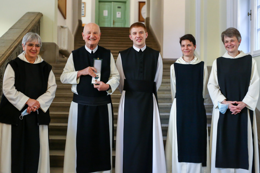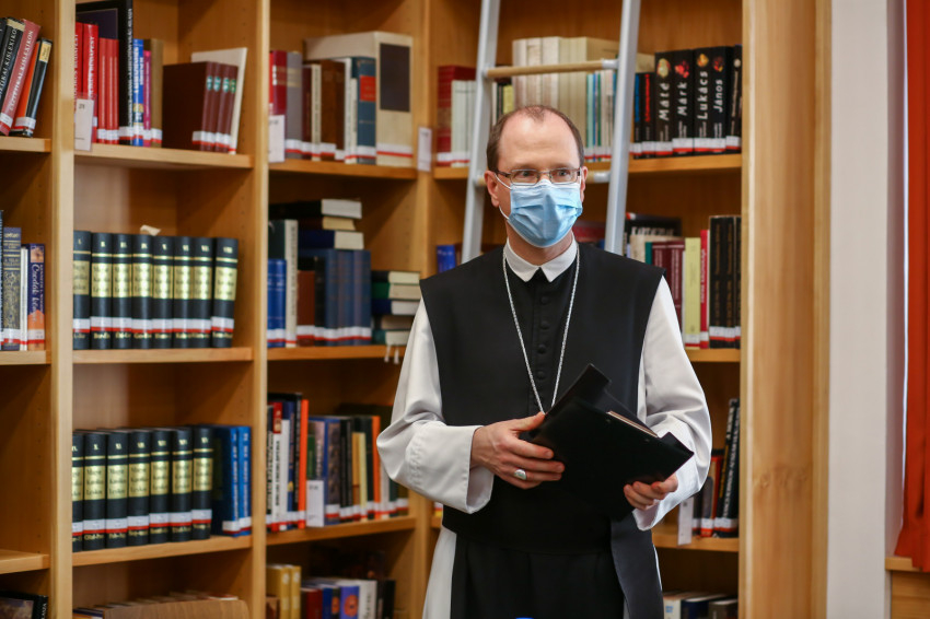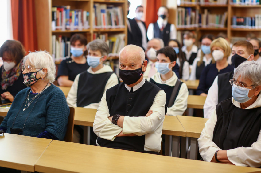 Ünneplőkkel telt meg a Budai Ciszterci Szent Imre Gimnázium újonnan kialakított könyvtárának olvasóterme. Sokan gyűltek össze, hogy a 2016 óta a magyar ciszterci közösséget erősítő Marton Bernát atyát köszöntsék: családtagjai, Bérczi Bernát ciszterci apát, a kismarosi ciszterci nővérek Horváth Olga apátnő vezetésével, a ciszterci gimnázium tanárai és diákjai.