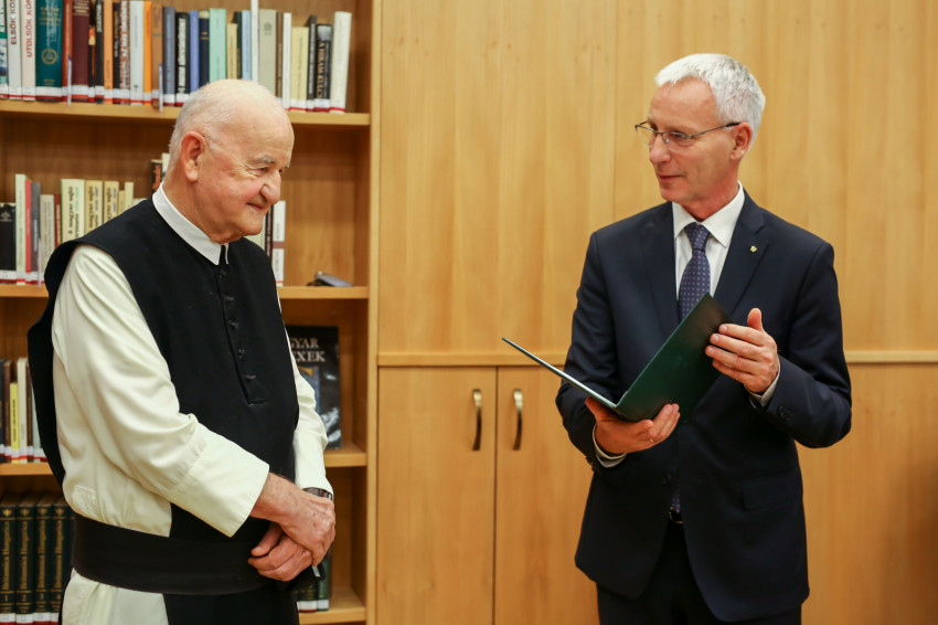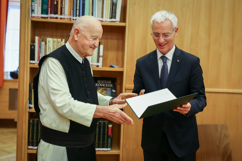 Elsőként Bérczi Bernát köszöntötte rendtársát. „Ünnepre jöttünk, egy életút dandárjára tekintünk vissza, és hálát adunk a Jóistennek Bernát atya életéért és munkásságáért. Egy izgalmas életért, melyen ott van a gondviselés keze nyoma” – fogalmazott az apát.