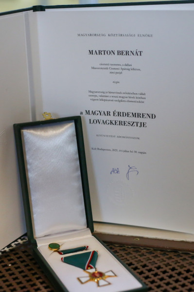Marton Bernát személyiségében kiemelte a hűséget és a kitartást, az Istenbe vetett bizalmat. „Ezt szeretnénk megköszönni, amikor átadjuk az Áder János köztársasági elnök adományozta kitüntetést. Köszönjük Magyarország hírnevének öregbítését, a texasi magyar ajkú hívek lelkipásztori szolgálatát” – nyújtotta át Soltész Miklós a Magyar Érdemrend lovagkeresztjét.