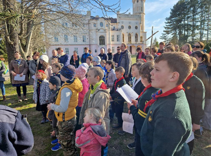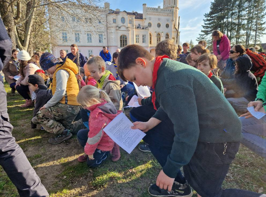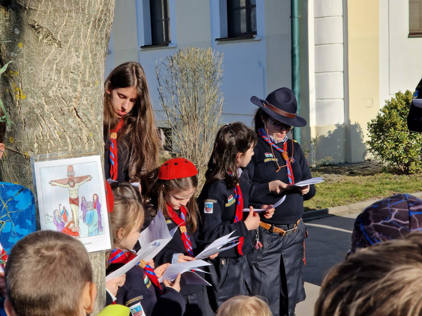 A cserkészek a sok játék és a finom ebéd után a hagyományos, 14 állomásos keresztút stációin elmélkedtek.