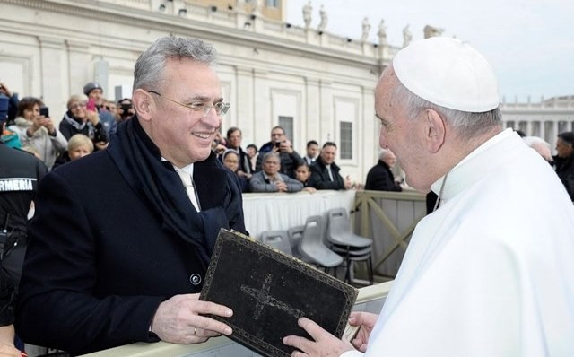 Deli Gabriella elmondta, a Szentatya, aki rendszeresen kap ajándékokat, tüzetesen megnézte a könyvet, és maga is meglepődött, hogy mit fog a kezében. Pontosan érzékelte, értette a könyvet. „Olyan ember kezébe került, akinél otthon van, akinél jó helyen van” – tette hozzá.