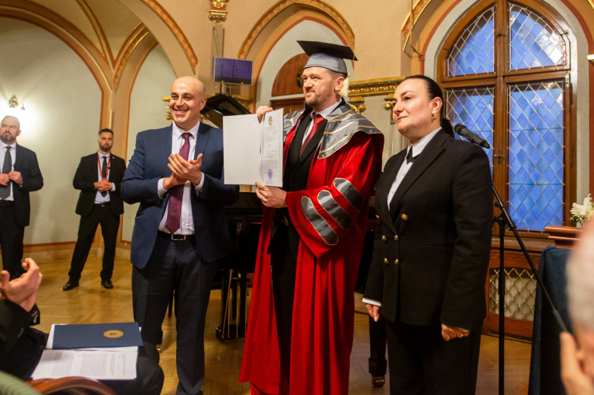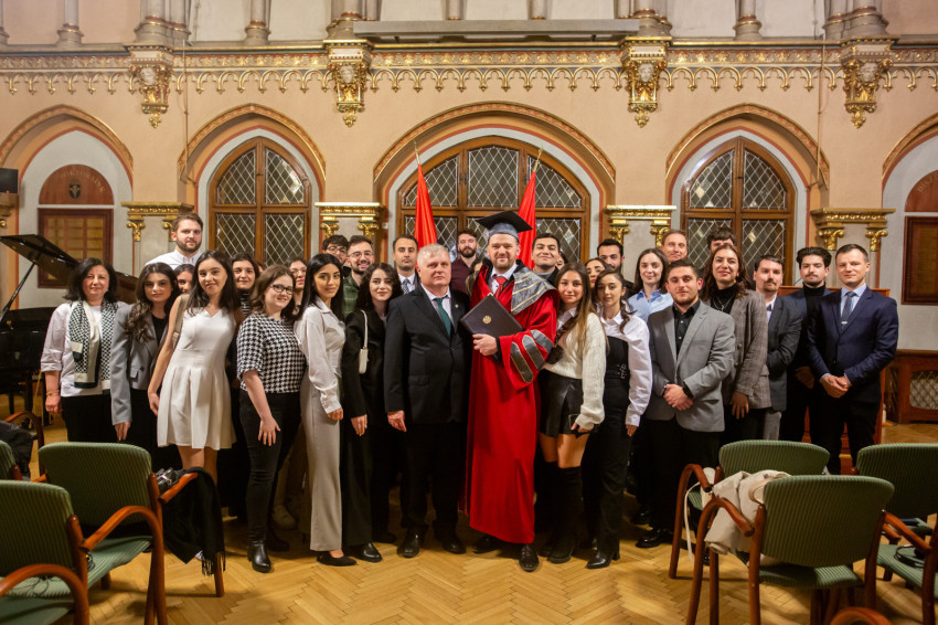 A továbbiakban az Örmény Állami Pedagógiai Egyetem Történelem- és Társadalomtudományi Karának dékánja, Edgar Hovhanniszjan méltatta Kovács Bálintot, aki 2002-ben fordult az örmény kultúra tanulmányozása felé, 2010-ben PhD-fokozatot szerzett történelemtudományból. 2008-tól a Közép-Európa Intézet tudományos munkatársaként tudományos könyvsorozatot indított az örményekről. A dékán kiemelte, 2016-ban akkor alapították a PPKE-n az Armenológiai Tanszéket, amikor a két ország között még nem voltak diplomáciai kapcsolatok. Kovács Bálint angol nyelvű képzést hozott létre, amelyre a Hungary Helps Programon keresztül Örményországból és a diaszpórából is érkeztek hallgatók. A tanszékvezető hét konferenciát és három nemzetközi kiállítást szervezett a témában, fontos szerepet vállal az örmény kultúra terjesztésében. „Kovács Bálint szíve az örményekért dobog, mi pedig téged nagyon szeretünk, ezért díszdoktori címet adományozunk” – zárta méltatását baráti szavakkal az egyetem dékánja.