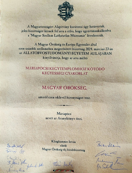 Immár a máriapócsi kegytemplomhoz – mely a találkozás és a béke helye – kötődő kegyességi gyakorlat is a magyar örökség része.