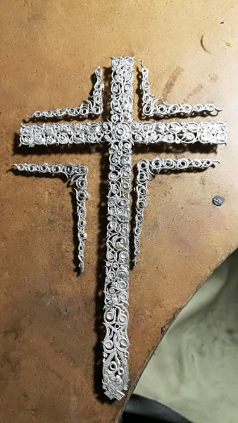 925 ezrelékes finomságú ezüstből készítettem a keresztet. A forrasztója ugyanúgy ezüst, és olyan ötvözőanyagok vannak benne, amik az olvadáspontját kicsit lejjebb viszik, hogy a két anyag ne egyszerre olvadjon meg. Tulajdonképpen ezüstöt olvasztok rá, azokra a részekre, amelyek összefogják” – mondta el Fehér László.