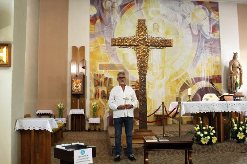 „1958-ban születtem, egész életemben aranyművesként dolgoztam. Ennek a megbízásnak nagyon sok köze van a szakmámhoz, persze nem pontosan ugyanaz, de nagyon közel áll hozzá. Nagy kihívásnak tekintettem, és kíváncsi voltam arra, hogy a tudásom elegendő-e ennek a nagy léptékű feladatnak a végrehajtásához. A felkérés egy körülbelül húsz centiméter nagyságú keresztre vonatkozott, ami faalapon ezüstből készül, és a lehető legjobban hasonlít az eredetire” – mondta Fehér László.