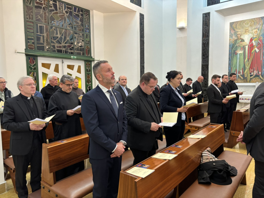 A program közös zsolozsmával kezdődött, amelyet Mohos Gábor esztergom-budapesti segédpüspök vezetett. Rövid elmélkedésében méltatta a magyar szenteket és boldogokat, valamint felidézte az ötven éve elhunyt Mindszenty József bíboros, hercegprímás áldozatos és ma is példamutató életét.