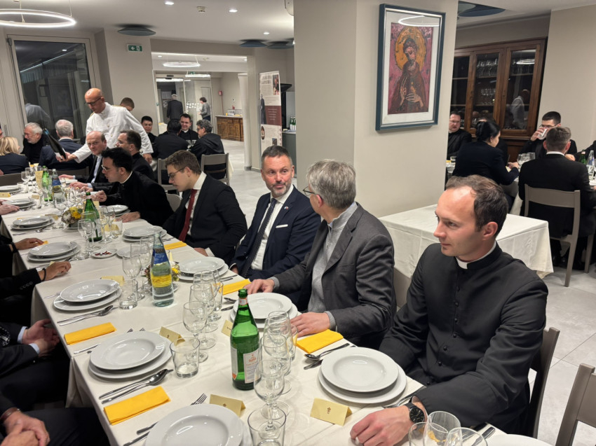 A terített asztalnál végül Törő András üdvözölte a megjelenteket. A Pápai Magyar Intézet rektora köszönetet mondott mindazoknak, akik munkájukkal és jelenlétükkel hozzájárultak az ünnep emelkedettségéhez.