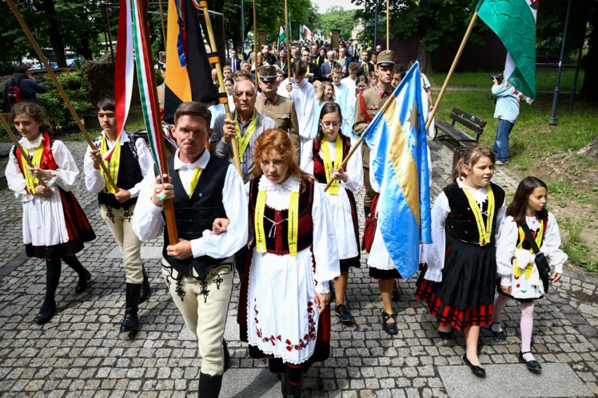 A koszorúzást követően a zarándokok a Mária-úton vonultak fel a kegyhelyhez, a Szűzanyát dicsőítő, védelméért fohászkodó énekekkel. A szentmise előtt a politikai vezetők és a zarándoklat lelkivezetői koszorúkat helyeztek el a templom bejárata előtt felállított szmolenszki emlékműnél. Tamás József püspök megemlékezett Lech Kaczyński köztársasági elnökről, aki 2010. április 10-én veszítette életét társaival együtt a szmolenszki katonai repülőtér közelében bekövetkezett repülőgép-szerencsétlenségben, amikor a katyńi vérengzés hetvenedik évfordulóján készült megemlékezni az áldozatokról.
