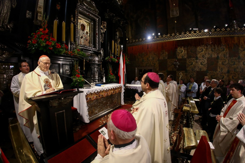 Erdő Péter bíboros megköszönte a köszöntéseket és rámutatott: a Szűzanya képe előtt eszünkbe kell jutnia, hogy egy a vezetőnk, Mária, aki elvezet minket az úton Krisztushoz. Ma is ez jelent megoldást minden apró és nagyobb nehézségünkre – figyelmeztetett.