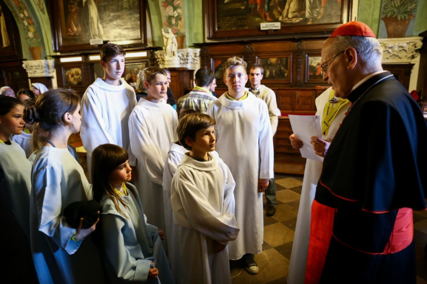 A templomban a pálos rend közösségének nevében Arnold Chrapkowski pálos rendfőnök üdvözölte az ötödik vonatos zarándoklat résztvevőit. Pázmány Pétert idézte, aki azt mondta: „Magyarország, édes hazám, a pálosokkal együtt fogsz növekedni, és velük együtt fogsz hanyatlani.” Azt kívánta, Magyarország tartson ki az imádságban és maradjon hűséges az atyák örökségéhez. Erdő Péter – válaszolva a pálos generális szavaira – megerősítette, hogy a pálos rend és Magyarország sorsa valóban összefonódik hazánk történetében.
