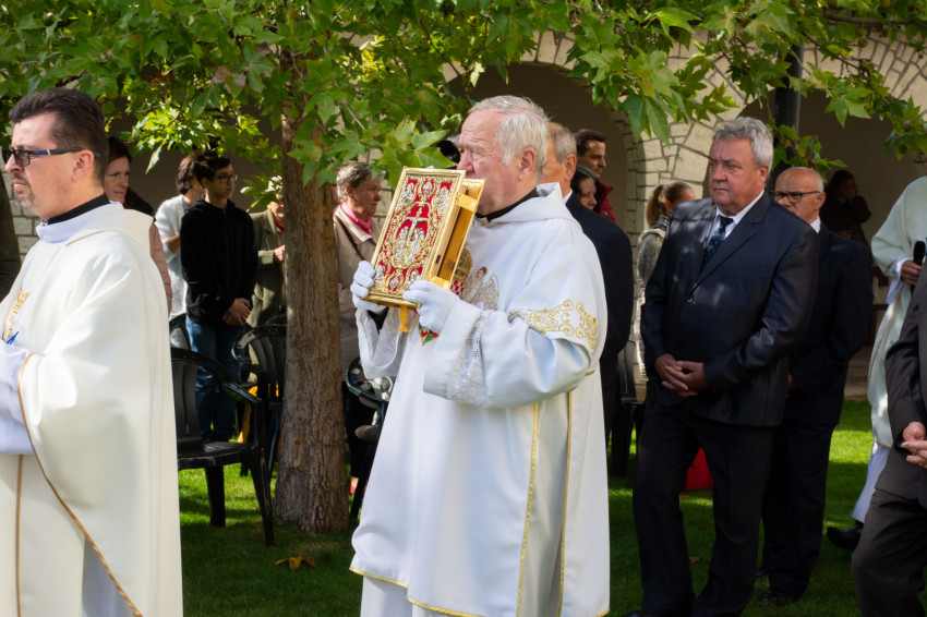 „Hálásak vagyunk, hogy a Magyar Szent Család – Szent István, Boldog Gizella, Szent Imre – zarándokhelyeként számontartott kegyhelyen, ahol Mindszenty József hercegprímás, bíboros 1948-ban az utolsó nagy nyilvános szentmiséjét ünnepelhette az általa hirdetett Mária-év kapcsán, Magyarok Nagyasszonya ünnepén közösen fohászkodhattunk nemzetünkért.