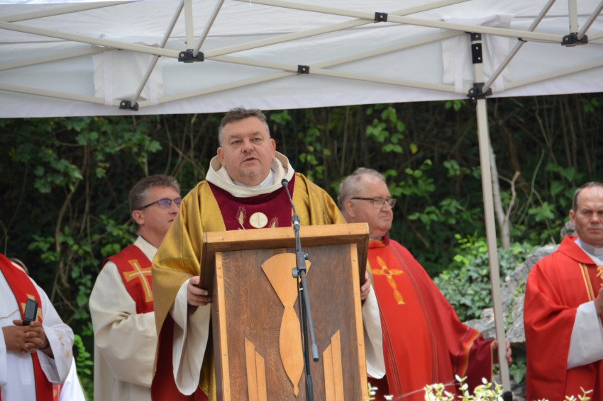 Prédikációjában felidézte a kegyhely múltjából azokat az időket, amikor az elhanyagolt létesítményeket nem sok választotta el attól, hogy örökre megsemmisüljenek, de kitartással, sok-sok munkával, küzdelemmel és áldozattal sikerült megőrizni és fölvirágoztatni. Kiemelte, hogy a Via Lucis mentén végigsétálva lehetőséget kapunk a lelki megújulásra és Krisztussal való viszonyunk átgondolására. „Arra hív meg bennünket, hogy először álmélkodjunk ennek a csodálatos alkotásnak a szépségén, a belőle áradó evangéliumi harmónián, utána pedig elmélkedjünk a föltámadt Krisztusról, aki maga az élet, és nekünk is életet ad” – fogalmazott Béla atya.