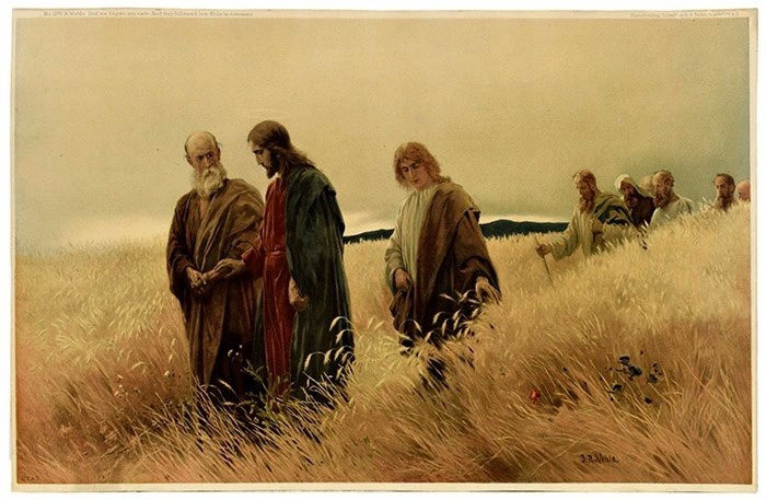 Amikor Jézus Galileában tanított, az egyik szombaton vetések között járt. Tanítványai tépdesni kezdték a kalászokat, és kezükkel morzsolgatva eszegették. Néhány farizeus rájuk szólt: „Miért tesztek olyant, ami szombaton tilos?” Jézus válaszolt nekik: „Nem olvastátok, mit tett Dávid, amikor társaival együtt éhezett? Bement az Isten házába, fogta a szent kenyereket, evett, és adott belőlük a többieknek is; pedig azokat csak a papoknak lett volna szabad megenniük.” Majd hozzátette: „Az Emberfia ura a szombatnak is.”