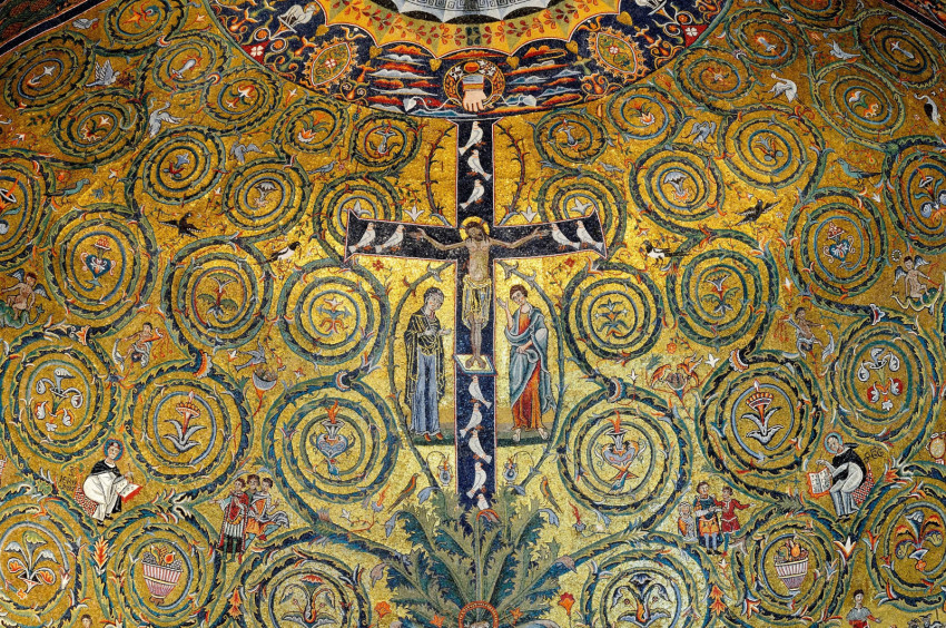 Kép: a római Szent Kelemen-templom apszismozaikja, 12. század