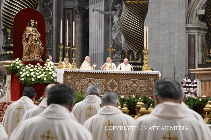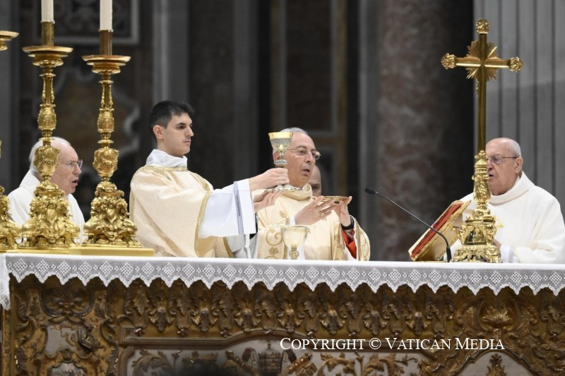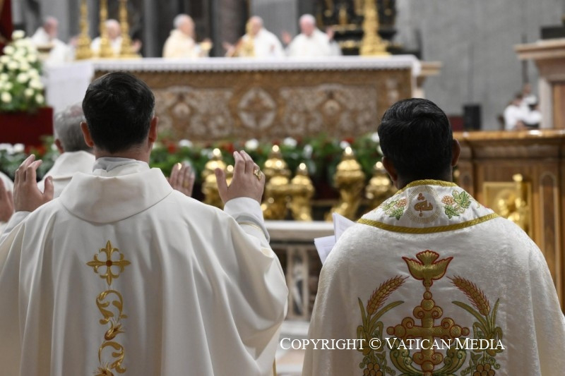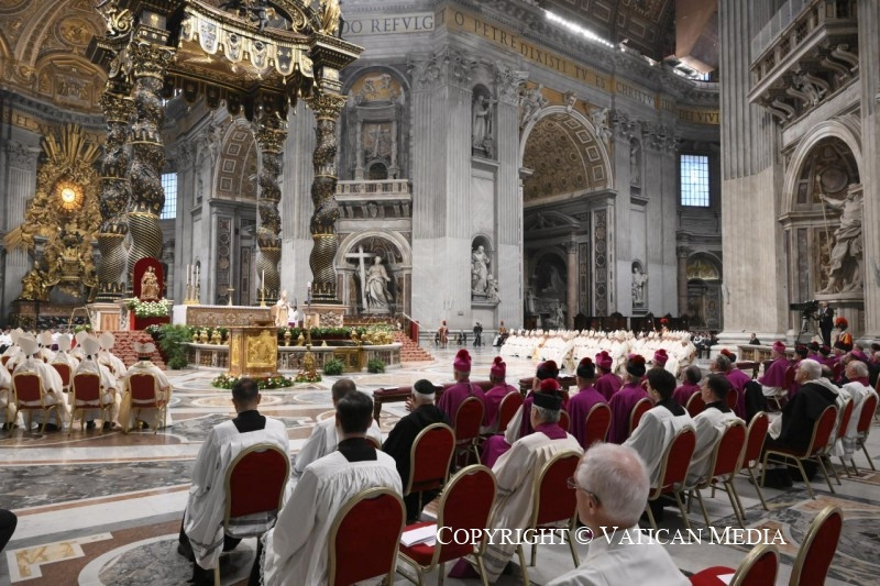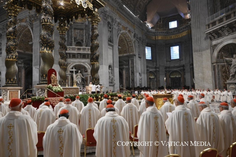 A Jelenések könyvéből vett szentleckében (vö. Jel 5,11–14) hallottuk azt a dicsőítést, amelyet az egész világegyetem zeng a trónon ülőnek és a Báránynak: „»Áldás, tisztelet, dicsőség és hatalom örökkön örökké!« A négy élőlény így felelt: »Ámen«, a vének pedig leborultak és imádták” (Jel 5,13–14).