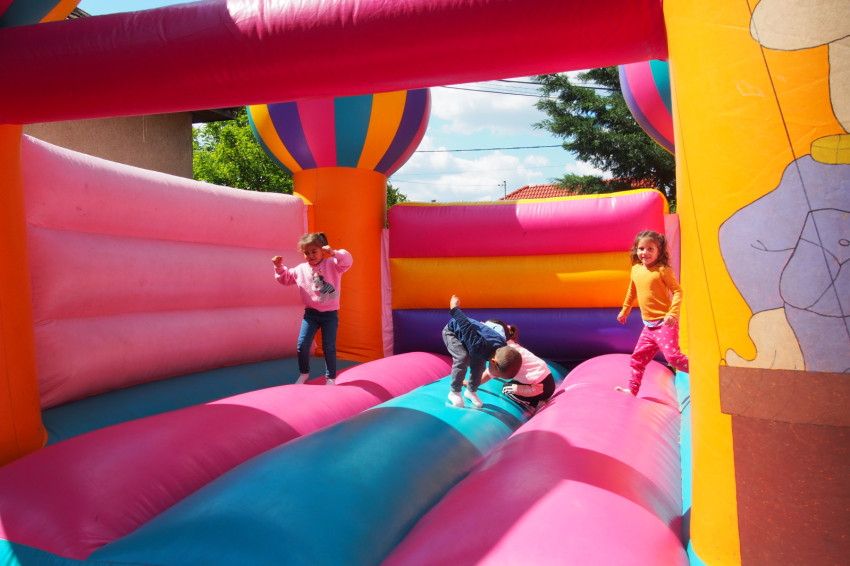Tizenkét fiatal érkezett, ez lehetőséget adott arra, hogy több színtéren játsszanak. A fiúk a sorversenyeket irányították, íjaztak a gyerekekkel; a lányok gyöngyöt fűztek, hajat fontak. A csillámtetkó készítésébe a nagyobb gyerekek is beszálltak. A legnagyobb tumultus természetesen a megunhatatlan ugrálóvárnál volt.