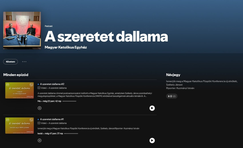 Kövessék A szeretet dallama podcast soron következő adásait a Katolikus Rádióban, a Magyar Katolikus Egyház YouTube-csatornáján és most már a Spotifyon is.