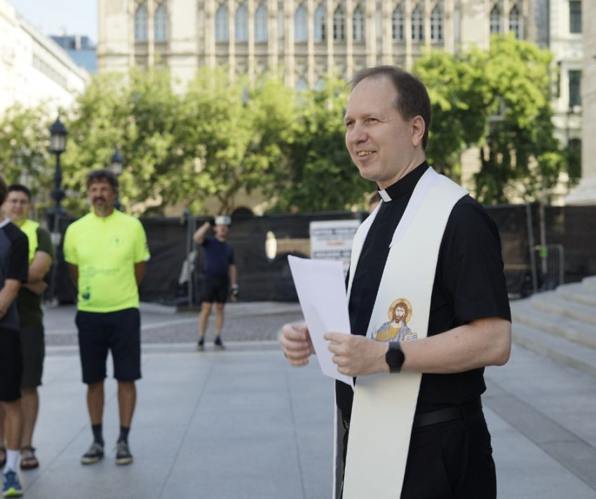 A szentmise végén Szlávik Bence, a Katolikus Szeretetszolgálat Alapítványának elnöke köszöntötte a résztvevőket, és átadta azokat a kerékpár javításához szükséges eszközöket, amelyeket az út alatt majd használni tudnak. „Ha lehet, ne legyen rá szükségetek” – mondta, majd hozzátette: „Vigyetek magatokkal minket erre az útra.”