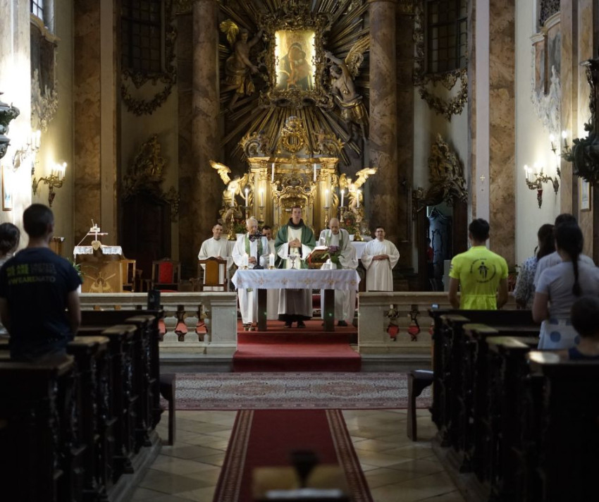 A szentmise főcelebránsa Balázs Jeromos OFM volt, akihez koncelebránsként két idősebb atya is csatlakozott a Katolikus Szeretetszolgálat Országos Papi Otthonából. Jeromos atya szentbeszédében köszöntötte a fiatal zarándokokat, és vállalásukat az irgalmas szamaritánus evangéliumban elhangzott példájához hasonlította.