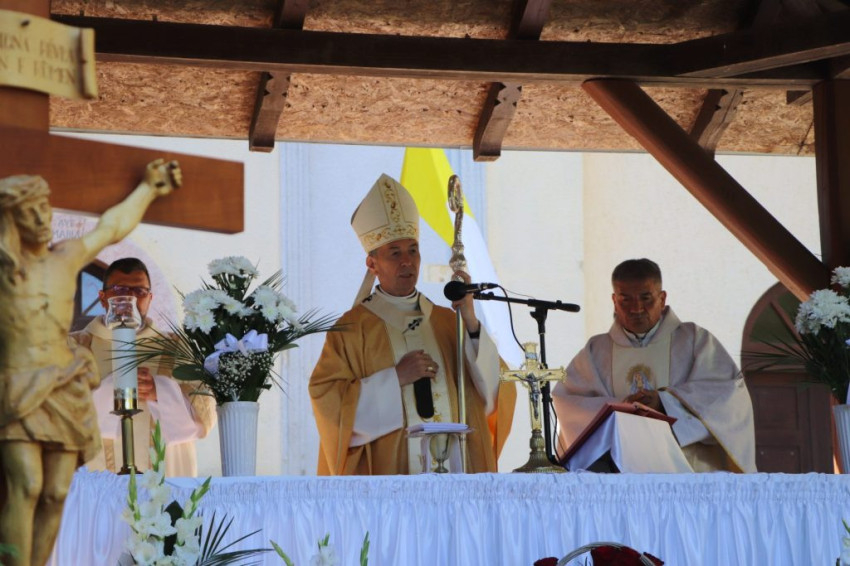 Holubák Attila plébános köszöntöte a főpásztort, a jelen lévő közéleti vezetőket, a híveket és a zarándokokat, akik azért érkeztek, hogy együtt imádkozzanak a magyar népért, hazánkért, egyházunkért, családjainkért és közösségeinkért.
