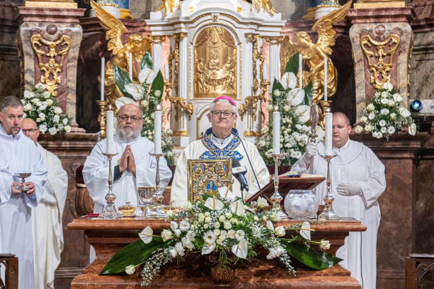 A közös Szentlélek-hívás és a több évszázados szép fohász, a loretói litánia elimádkozása után a főbúcsú előesti szentmiséjét Veres András győri megyéspüspök, az MKPK elnöke mutatta be.