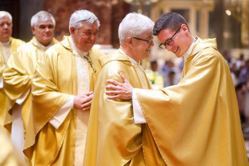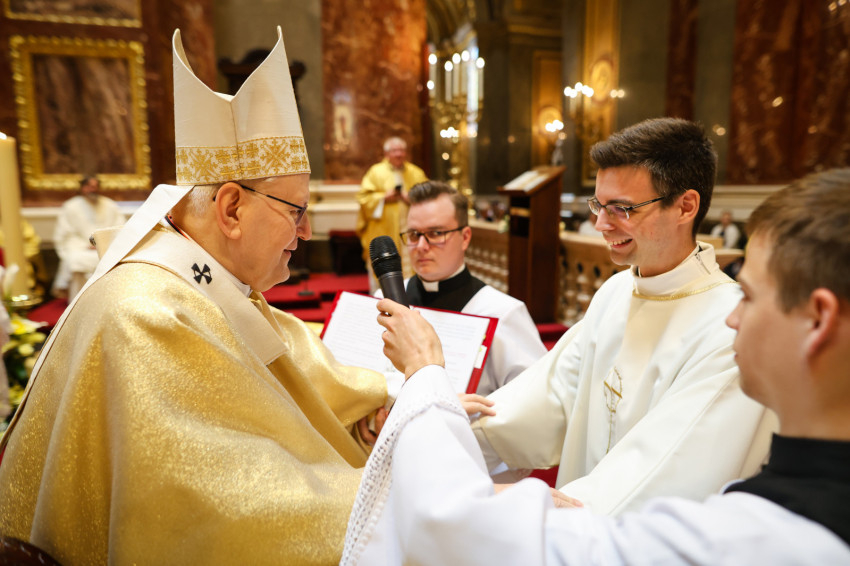 Az áldozást követően Erdő Péter bíboros elsőként fogadhatta az újonnan szentelt pap újmisés áldását.