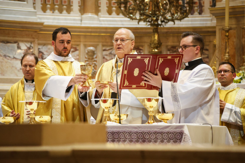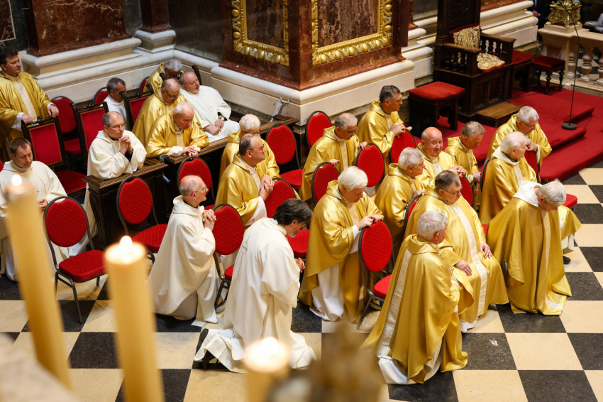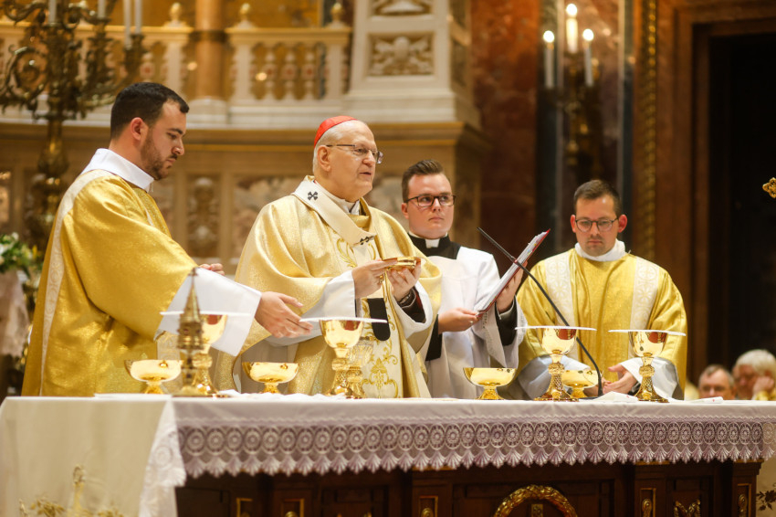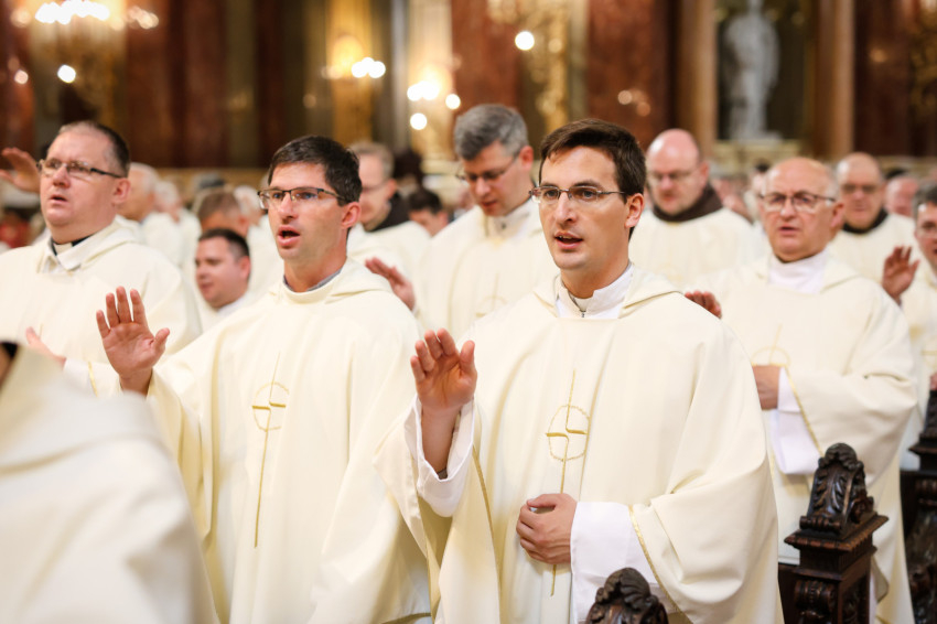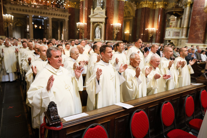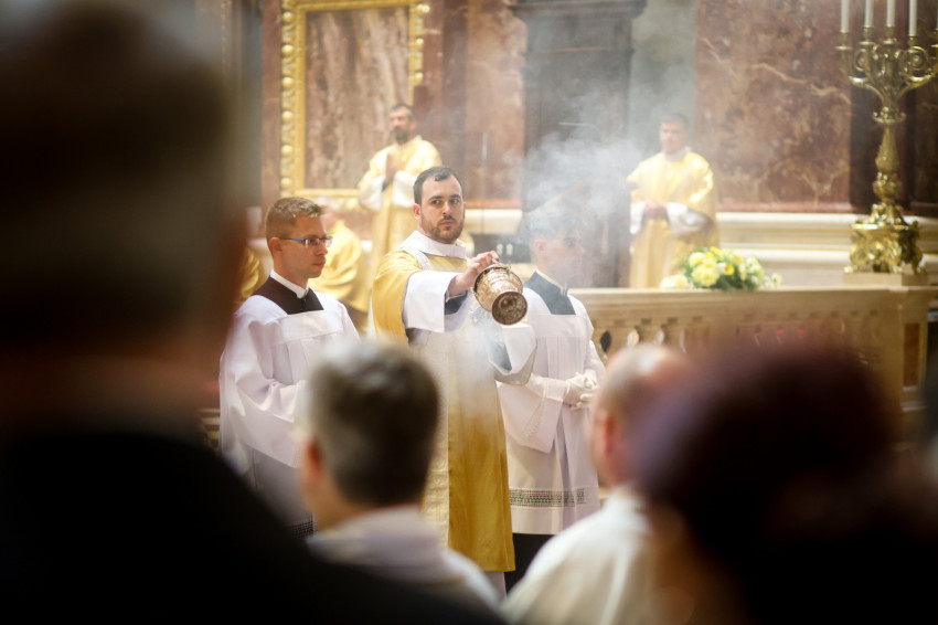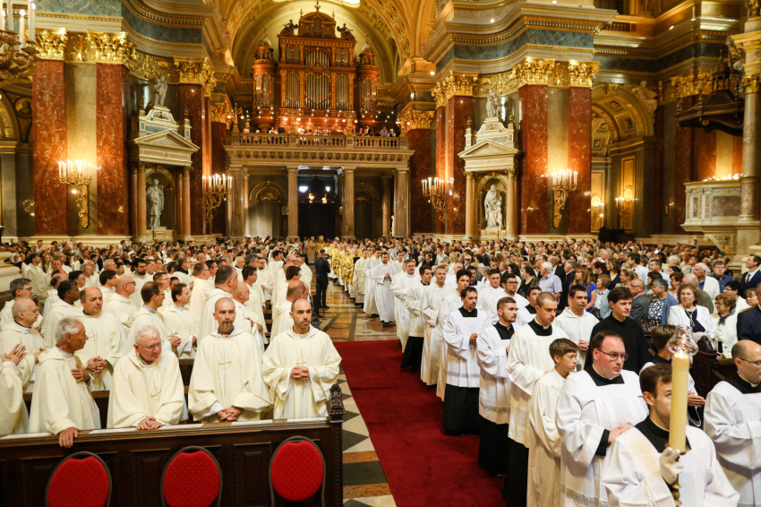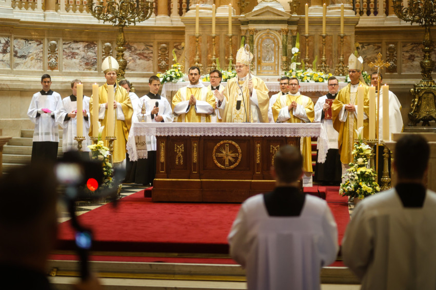 Az esztergomi bazilika felújítási munkálatai miatt a Szent István-bazilikában megtartott szertartáson Mohos Gábor és Martos Levente Balázs esztergom-budapesti segédpüspök mellett a főegyházmegye papságának jelentős része koncelebrált.
