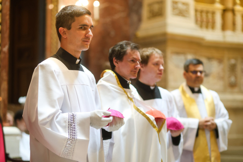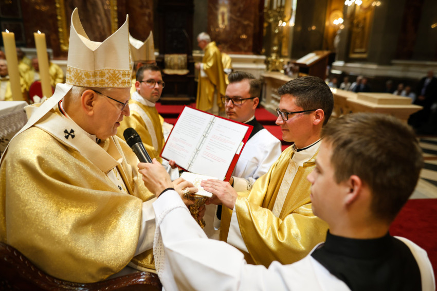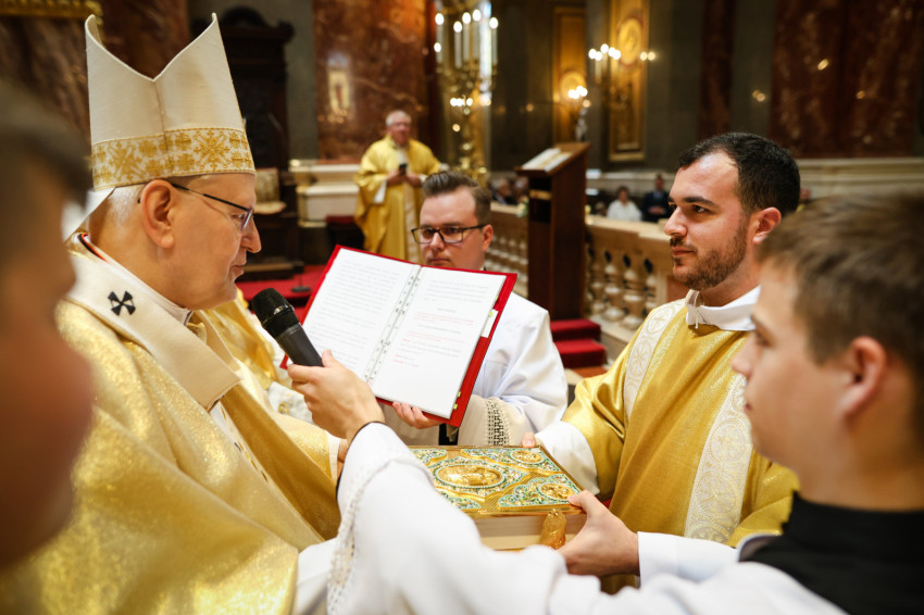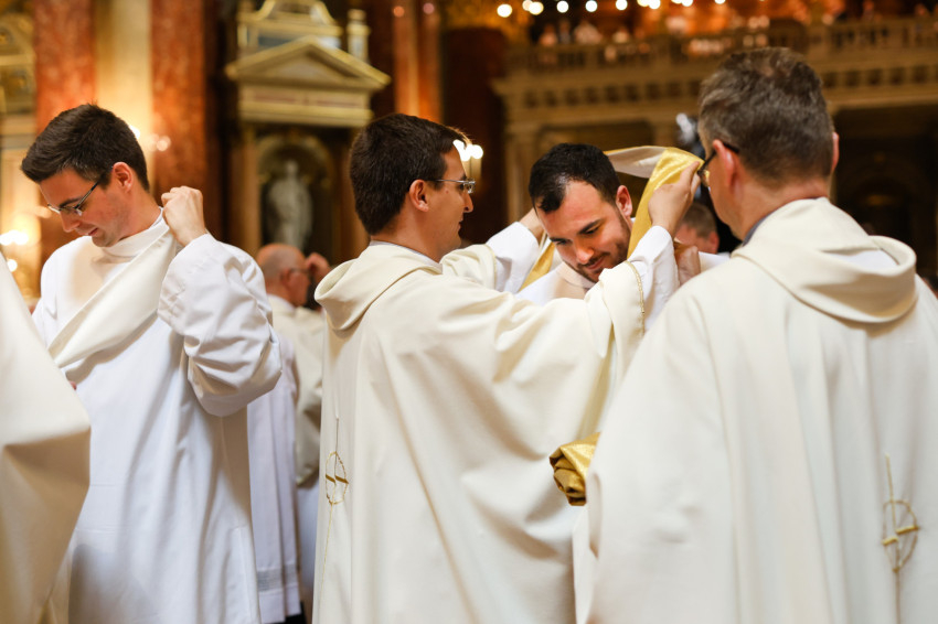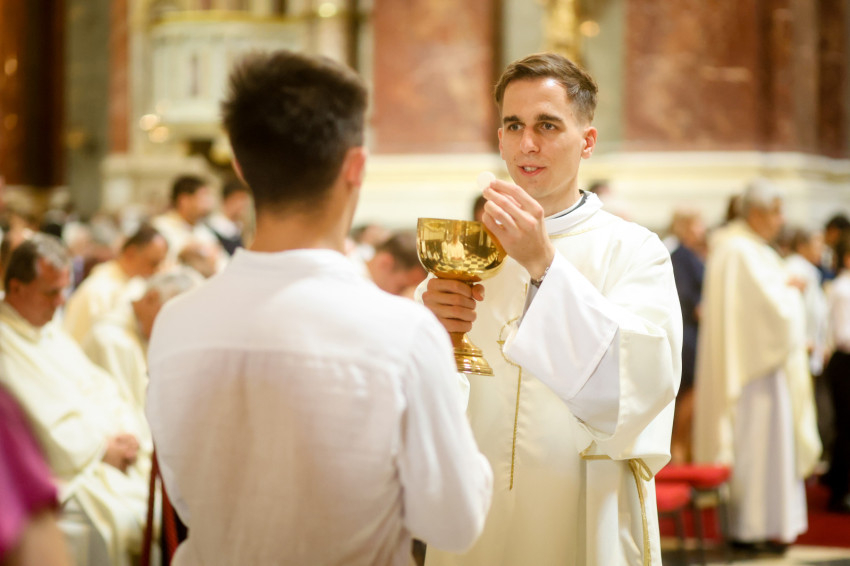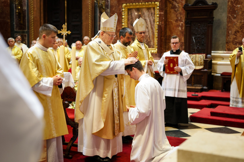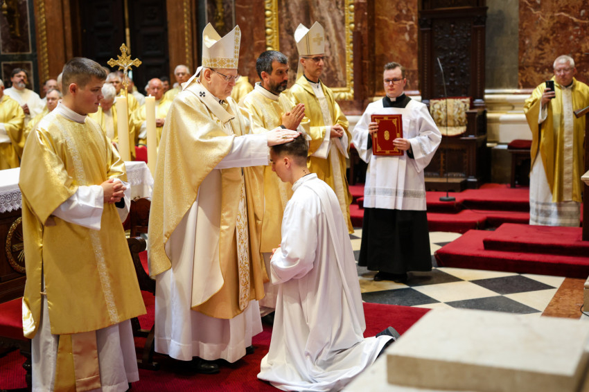 A szentmise keretében megtartott pap- és diakónusszentelés alkalmával Erdő Péter bíboros, prímás, esztergom-budapesti érsek Faragó András diakónust pappá, Alpek Gergely, Piukovics Dániel, Riesz Benedek, Schmotzer Kristóf akolitust diakónussá, valamint Bertalan Árpád, Győző Tamás, Kocsis Vilmos Zoltán, Kuti Imre és Lazányi Ferenc akolitust állandó diakónussá szentelte.