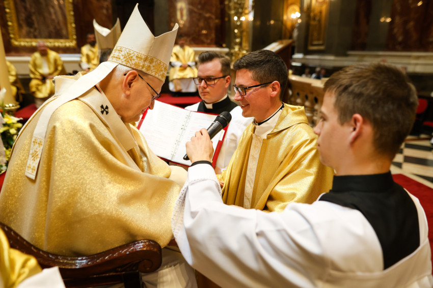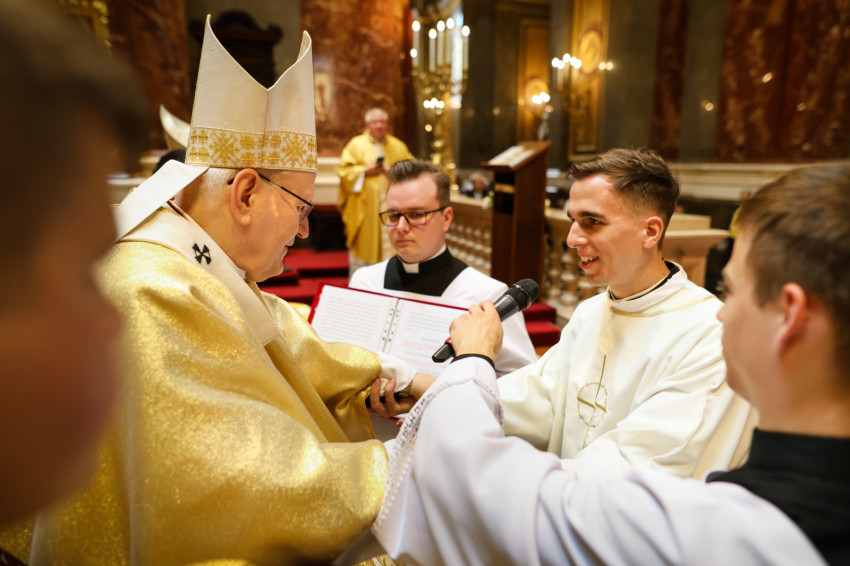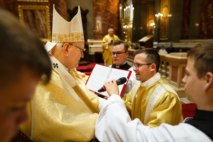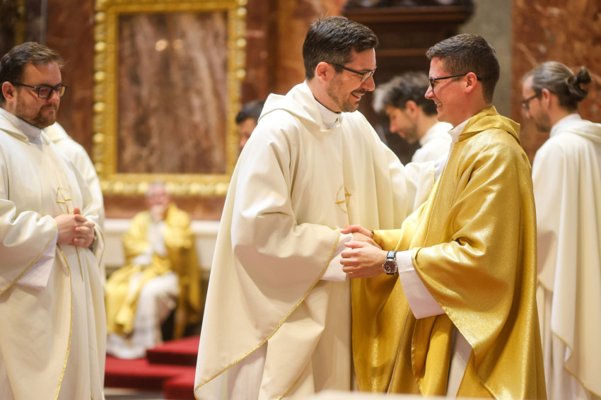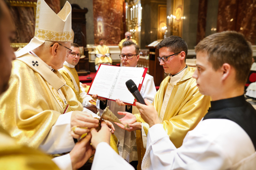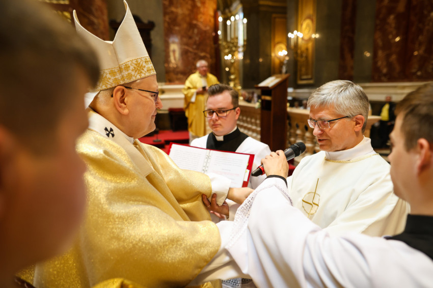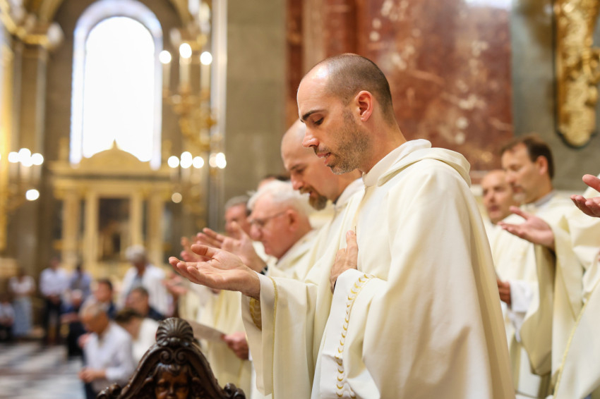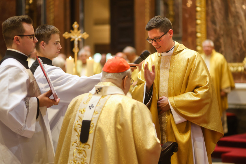 A szentmise keretében megtartott pap- és diakónusszentelés alkalmával Erdő Péter bíboros, prímás, esztergom-budapesti érsek Faragó András diakónust pappá, Alpek Gergely, Piukovics Dániel, Riesz Benedek, Schmotzer Kristóf akolitust diakónussá, valamint Bertalan Árpád, Győző Tamás, Kocsis Vilmos Zoltán, Kuti Imre és Lazányi Ferenc akolitust állandó diakónussá szentelte.