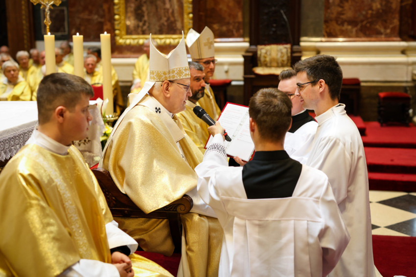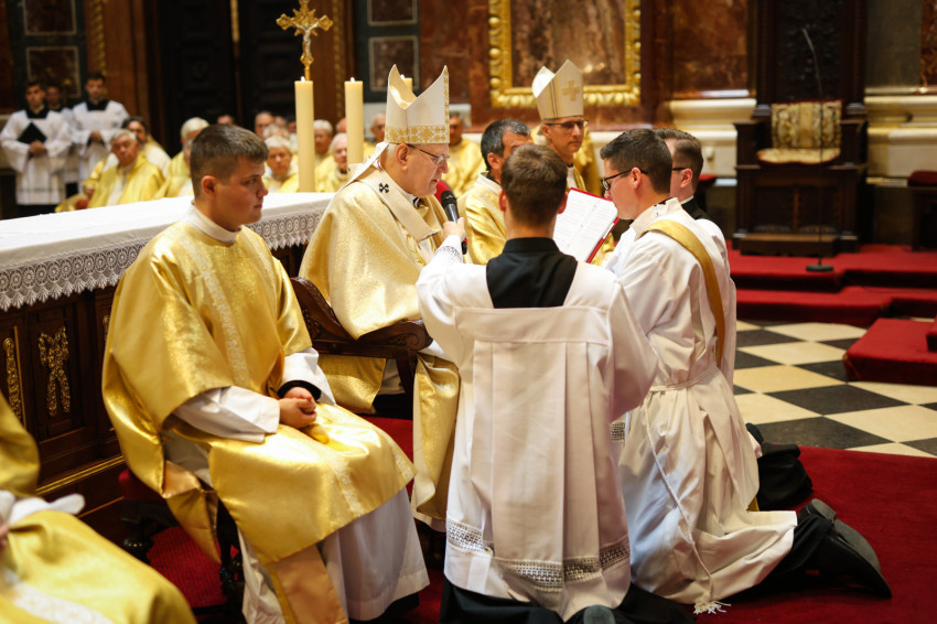 Ezt követően egyházmegyénkben ma végzünk itt először papszentelést és ma szentelünk a papságra készülő és állandó diakónusokat is.