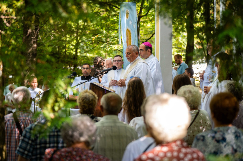Székely János püspök így üdvözölte a híveket: „Nagy szeretettel köszöntök minden kedves zarándokot. Itt állunk a leggyönyörűbb templomban, ami csak létezik, a teremtés, a természet templomában. Ezt a templomot Isten építette. Oszlopai a fák, boltozata az égbolt, mennyezetfreskói a felhők, padlózata a fűszálak, a virágok.