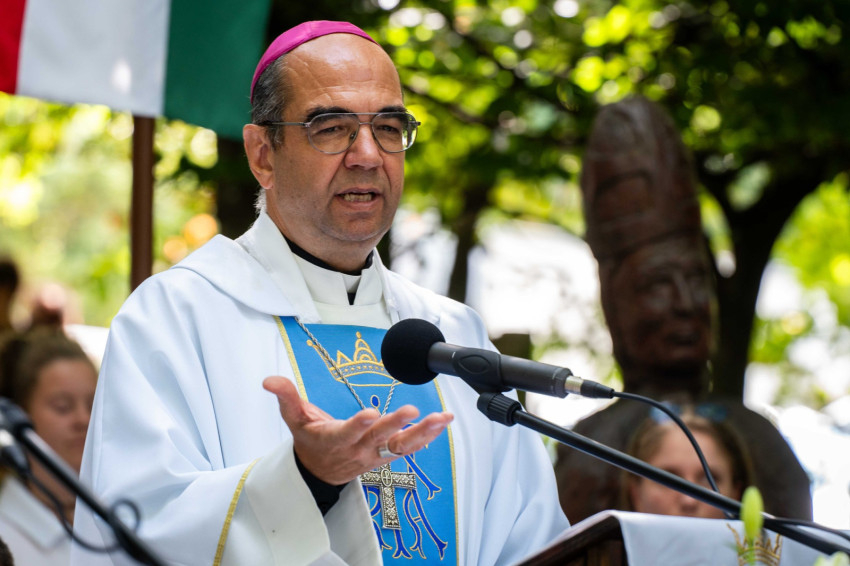 Az emberi szívet egészen semmi más nem tölti be, csak az Isten, csak odaföntről lehet betölteni. A földi dolgok mind végesek és töredékesek, sebzettek. Csak aki kinyitja a szívét, mint Mária az ég felé; csak aki hívő, akinek az élete egy hatalmas igen az ég felé, csak az tudja átélni a teljességet, a boldogságot. Mária boldogasszony, mert hitt, mert az élete egy óriási igen volt Istennek” – hangsúlyozta a főpásztor.