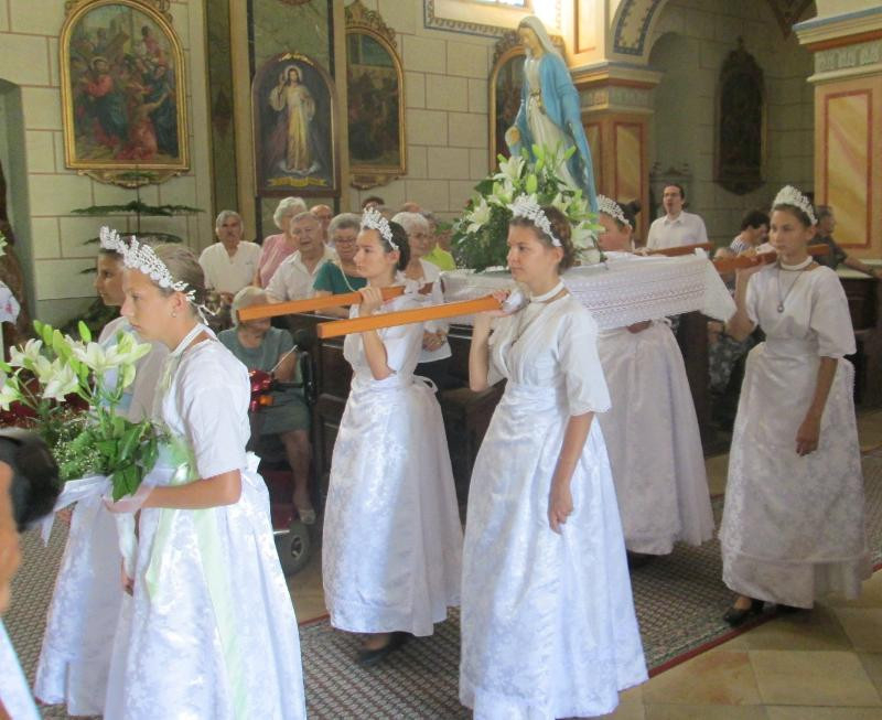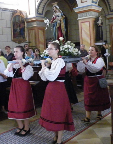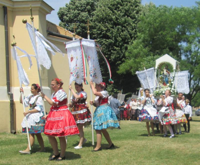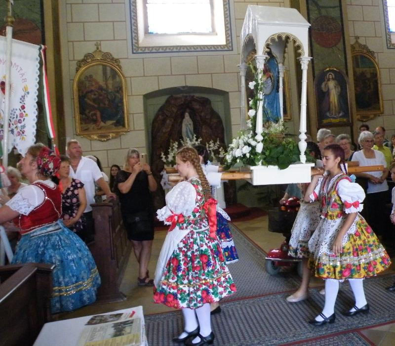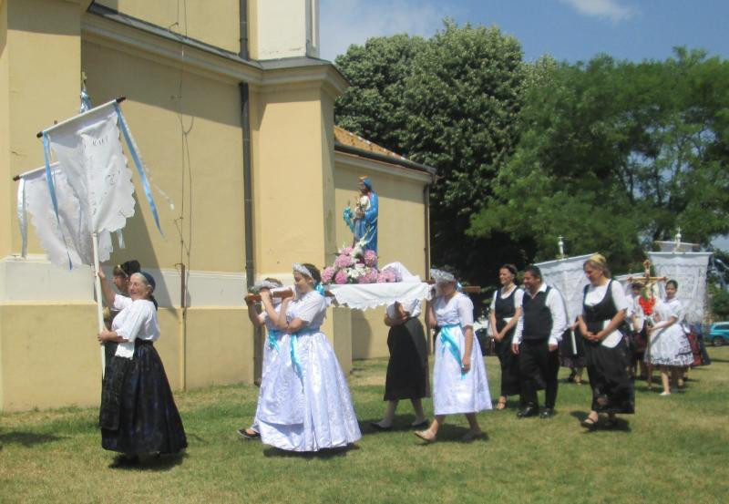 Tavaly a járványhelyzet miatt elmaradt a találkozó, idén azonban Bácsbokod, Bátmonostor, Csátalja, Fajsz, Gara, Hajós, Miske, Nagybaracska, Nemesnádudvar, Sükösd és Vaskút lányai, asszonyai a különböző nemzetiségek népviseleteibe öltözve ismét elhozták Vaskútra római katolikus templomaik szalagokkal és virágokkal feldíszített hordozható Mária-szobrait.