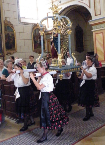 A szentmisét követő körmeneten több száz hívő követte a Mária-szobrok hordozóit. Az ünneplők a templomot megkerülve tértek vissza áldásra.