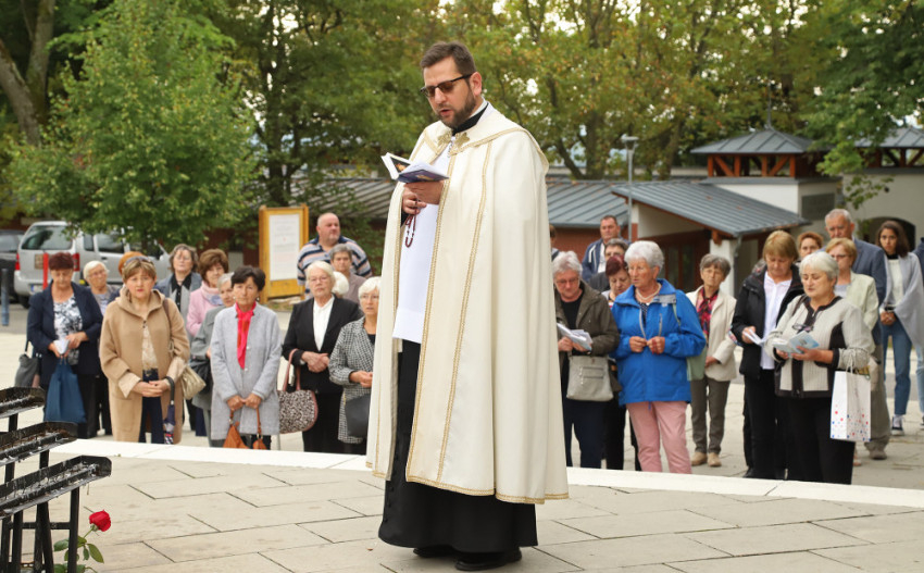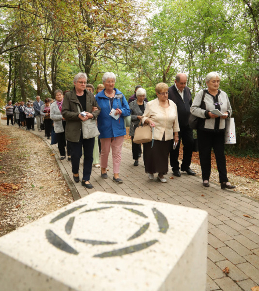 Darnai Ágoston köszöntötte az egybegyűlteket, majd a Szűzanya szobrától örvendetes olvasóval indult a körmenet a Rózsafüzér sétány felé. A Fájdalmas Szűzanya szobránál elhangzott a Hétfájdalmú Szűzanya rózsafüzére is, az imádságokat végig ének kísérte.